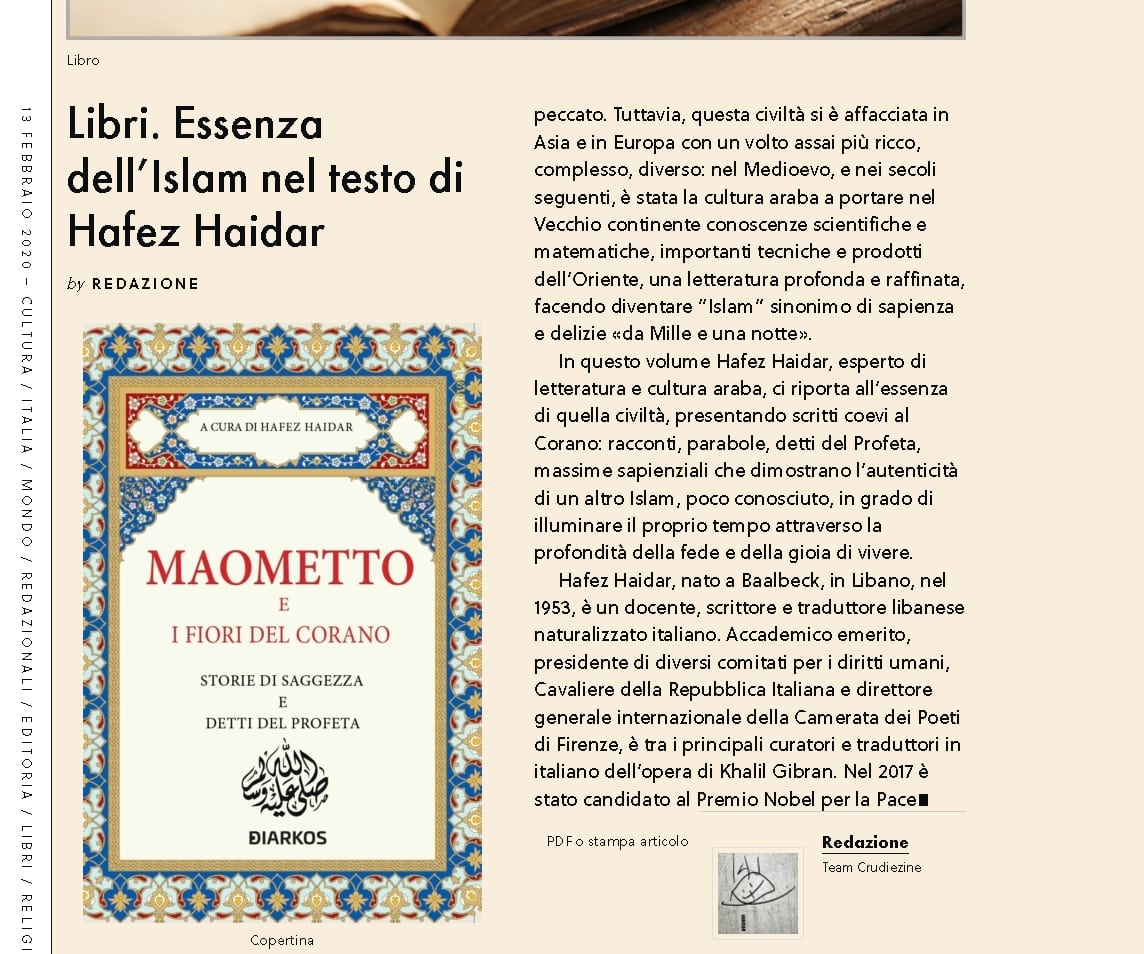 Maometto e i fiori del Corano di Hafez Haidar. Anteprima su Crudiezine