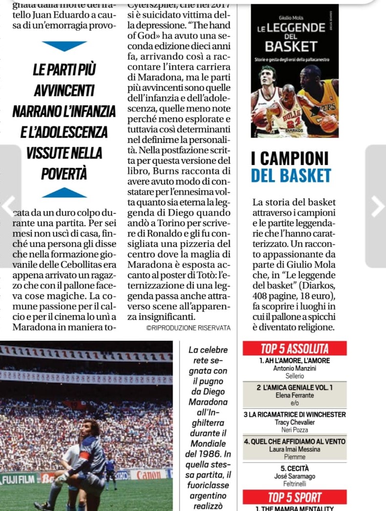 Le leggende del basket di Giulio Mola su Tuttosport (ed. Nazionale) del 15/02/20 pag. 31