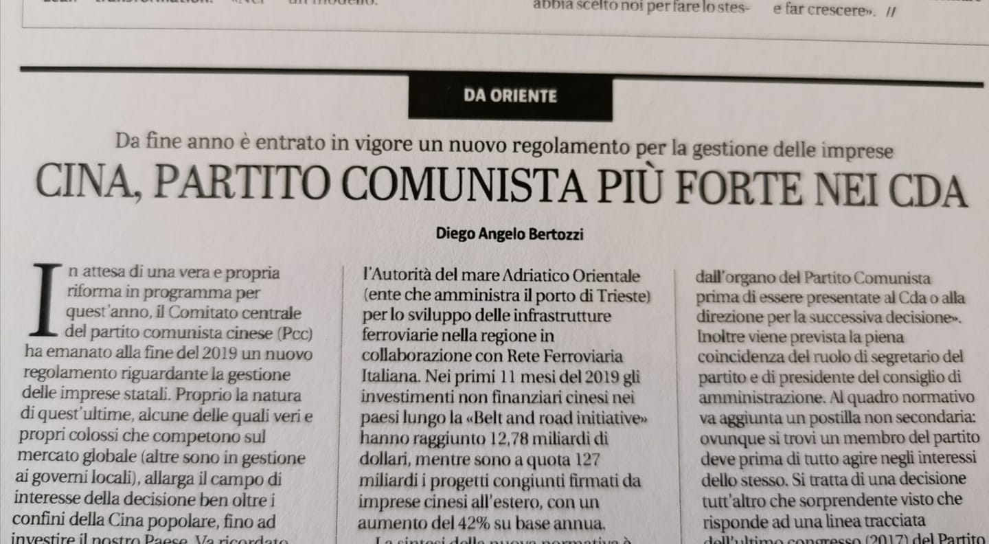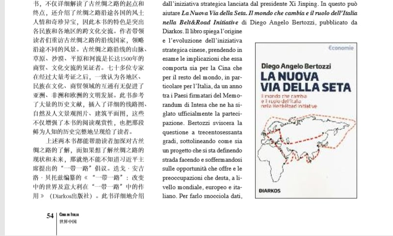 La Nuova via della Seta di Diego Angelo Bertozzi sulla rivista Cina in Italia ed. febbraio 2020 pag. 54
