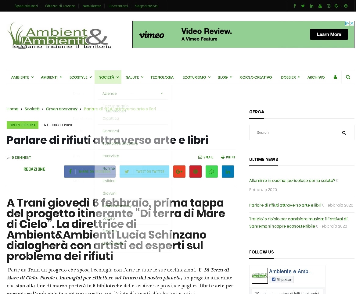 Alessandro Farruggia autore di "Cambiamenti climatici" presenta il suo libro a Trani su Ambiente & Ambienti