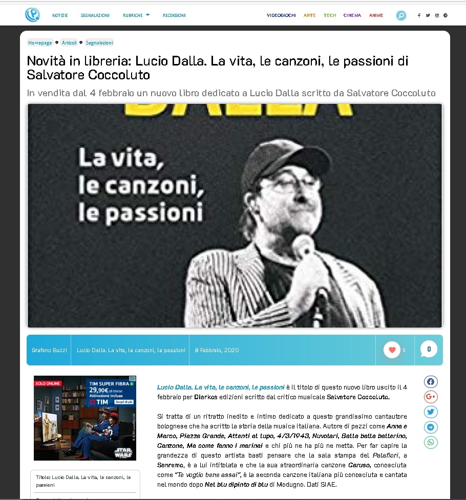 LUCIO DALLA. LA VITA LE CANZONI LE PASSIONI di Salvatore Coccoluto su ICrewplay