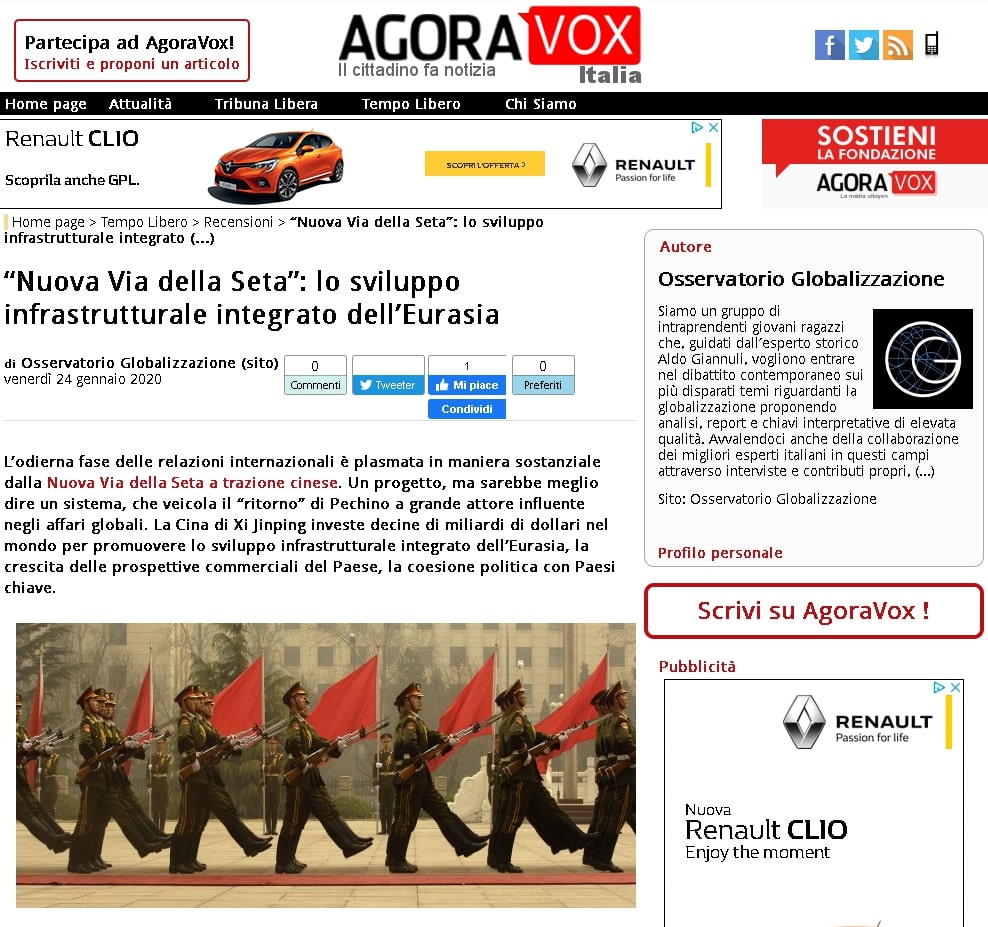 Capire la “Nuova Via della Seta”: il saggio di Diego Angelo Bertozzi su Osservatorio Globalizzazione