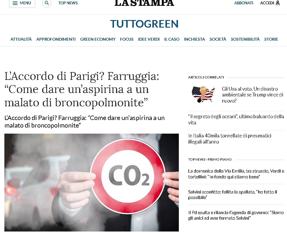 Cambiamenti climatici di Alessandro Farruggia su La Stampa