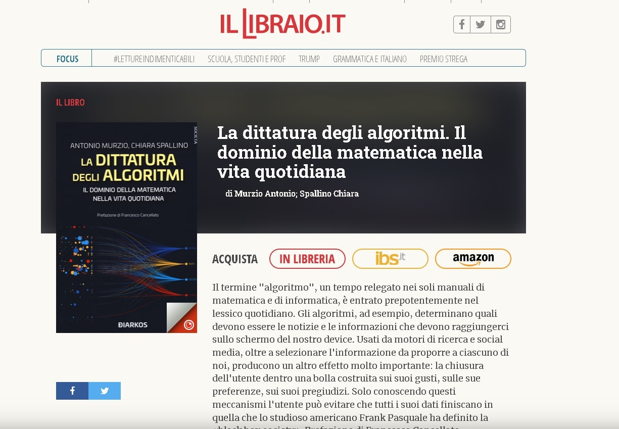 La dittatura degli algoritmi. Il dominio della matematica nella vita quotidiana su Il Libraio