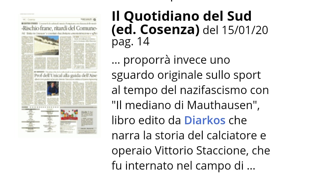 Il Mediano di Mauthausen di Francesco Veltri su Il Quotidiano del sud (Ed. Cosenza ) del 15/01/2020 pag. 14