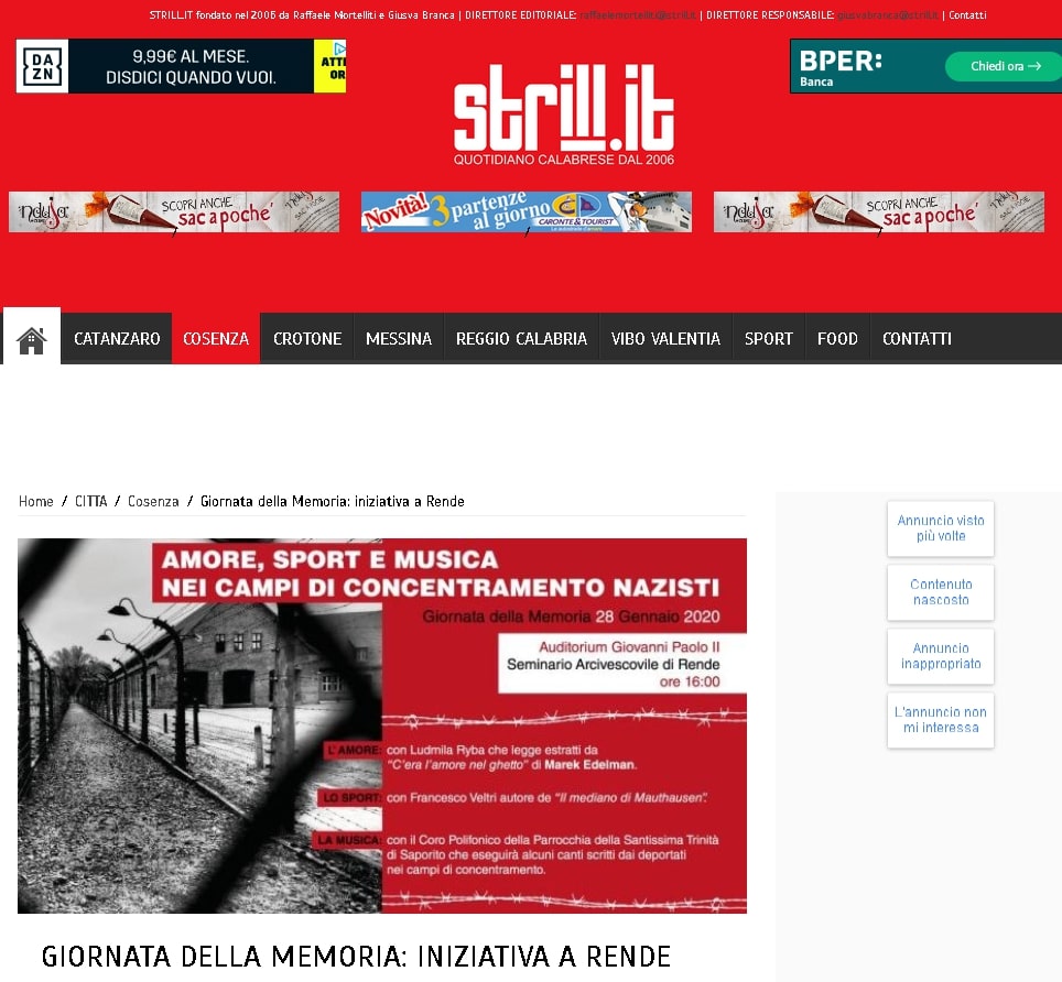 Strill.it ricorda la presentazione de "Il mediano di Mauthausen" in occasione della Giornata della Memoria