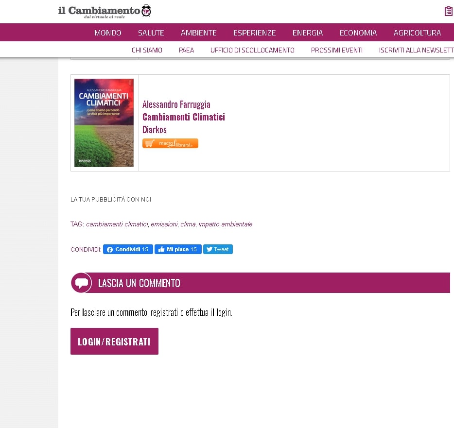 “Cambiamenti climatici. Come stiamo perdendo la sfida più importante” il libro di Alessandro Farruggia su GreenItalia