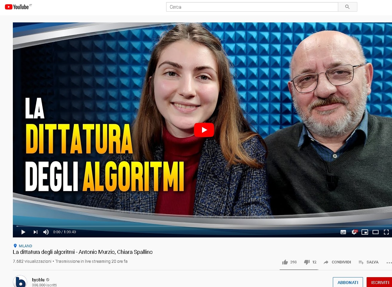 Il video dell'intervista di Antonio Murzio e Chiara Elisa Spallino autori de "La dittatura degli algoritmi", ospiti di Claudio Messora nella trasmissione Byoblu