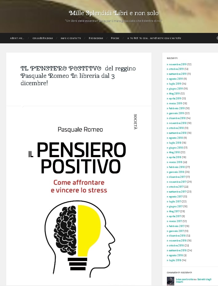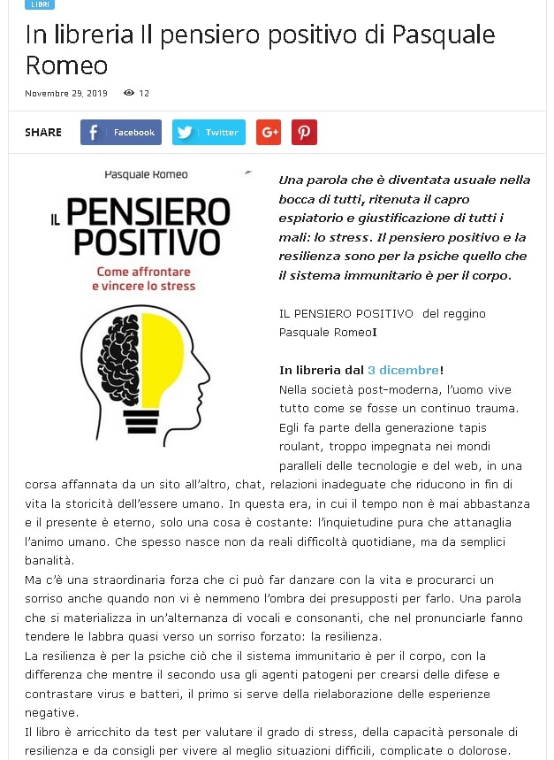 IL PENSIERO POSITIVO del reggino Pasquale Romeo In libreria dal 3 dicembre! su Mille splendidi libri e non solo
