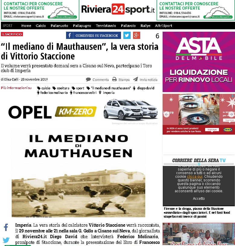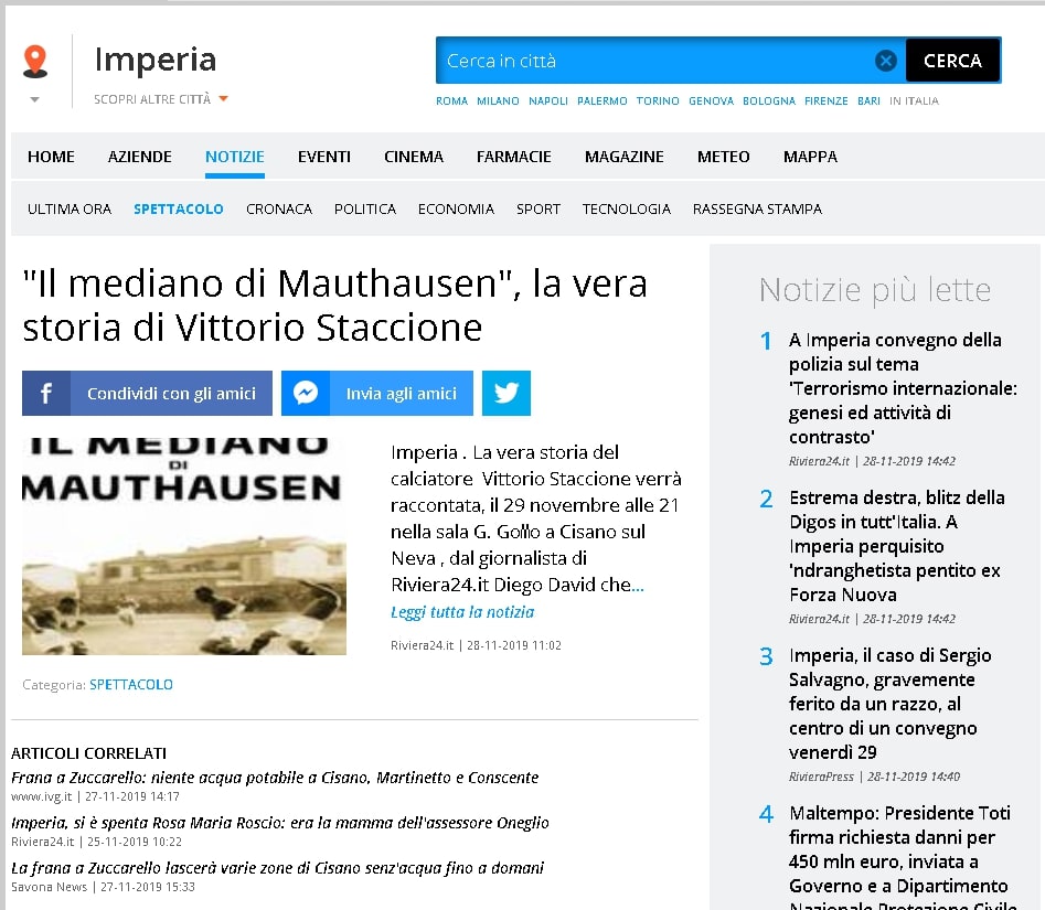 “Il mediano di Mauthausen”, venerdì a Cisano la presentazione del volume su Vittorio Staccione su Savonanews.it