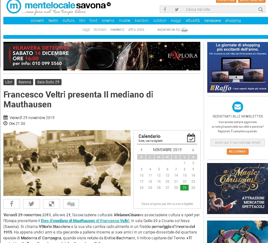 Francesco Veltri presenta Il mediano di Mauthausen su Mentelocale Savona