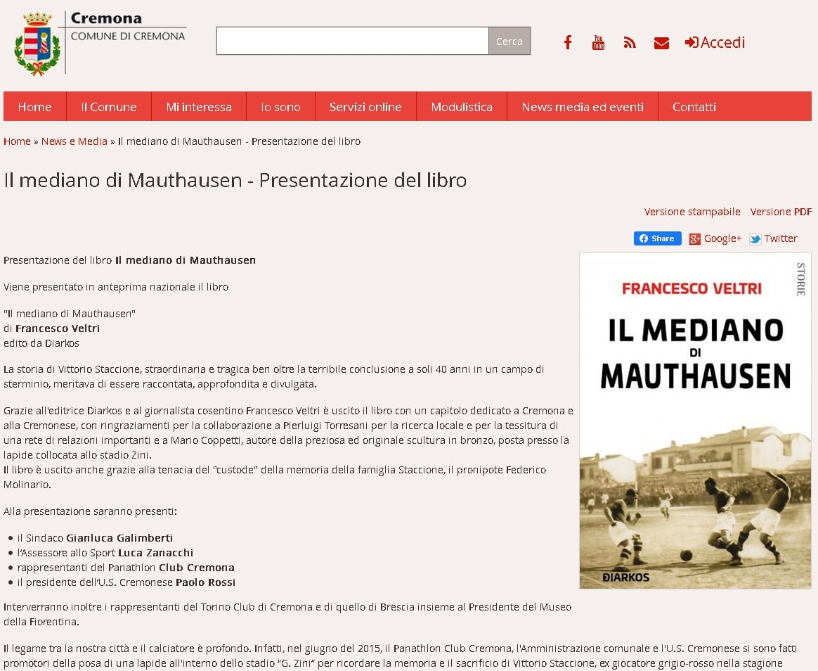 l mediano di Mauthausen - Presentazione del libro su comune.cremona.it