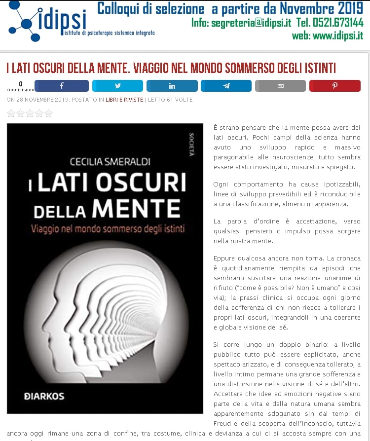 I lati oscuri della mente. Viaggio nel mondo sommerso degli istinti di Cecilia Smeraldi su Psiconline.it