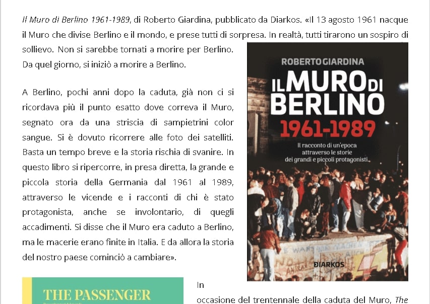 Scrivere di Berlino, a 30 anni dalla caduta del Muro- Il muro di Berlino di Roberto Giardina