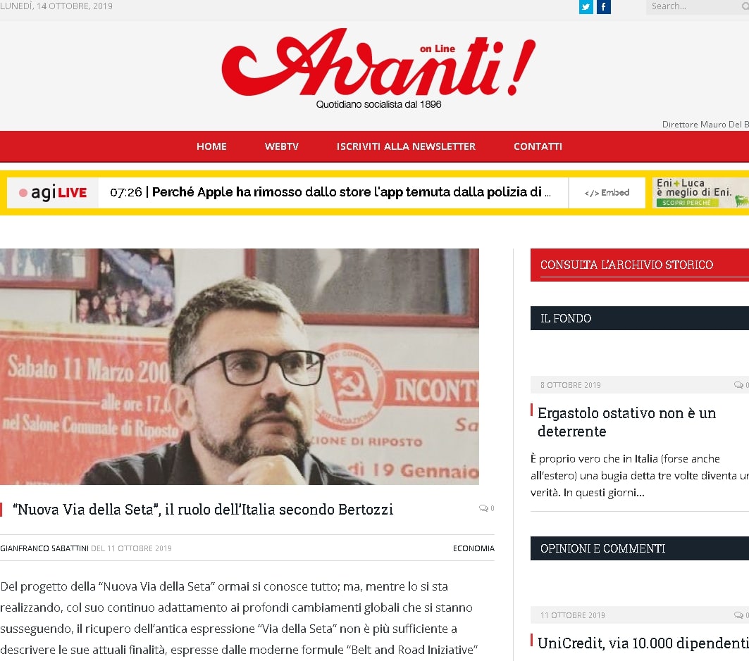 “Nuova Via della Seta”, il ruolo dell’Italia secondo Bertozzi su Avantionline