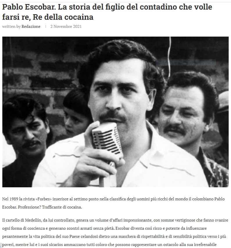 Pablo Escobar. Vita, amori e morte del “Re della cocaina” di Domenico Vecchioni su Bonculture