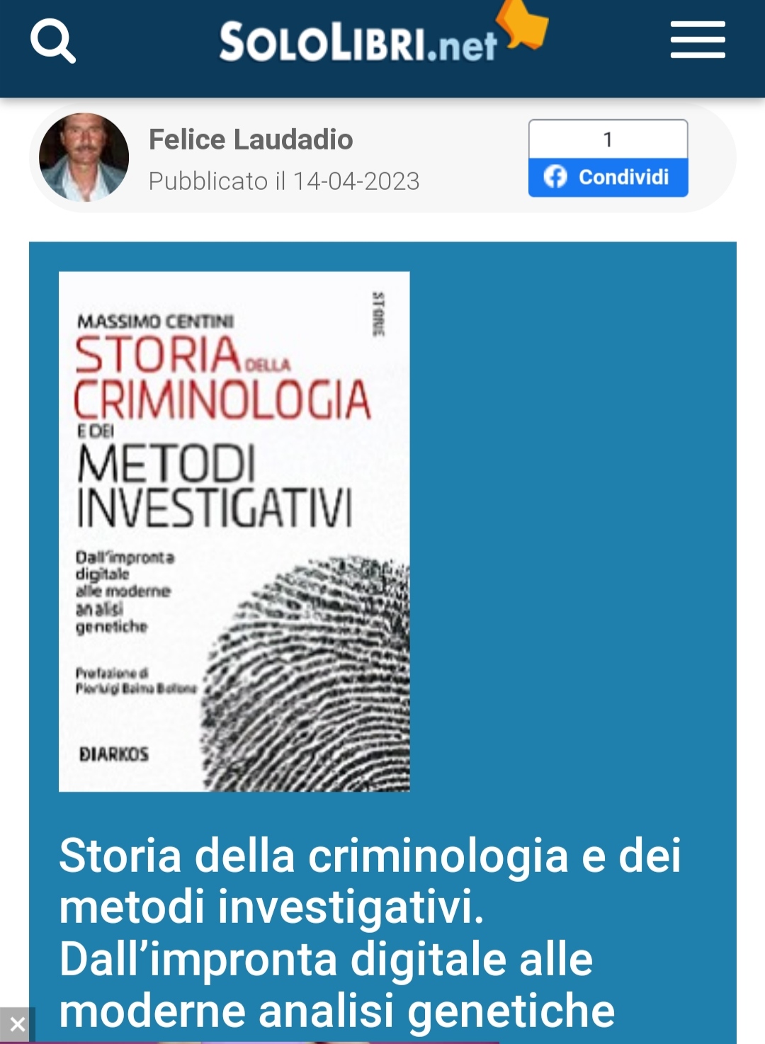 Storia della criminologia e dei metodi investigativi. Dall’impronta digitale alle moderne analisi genetiche di Massimo Centini - Solo Libri
