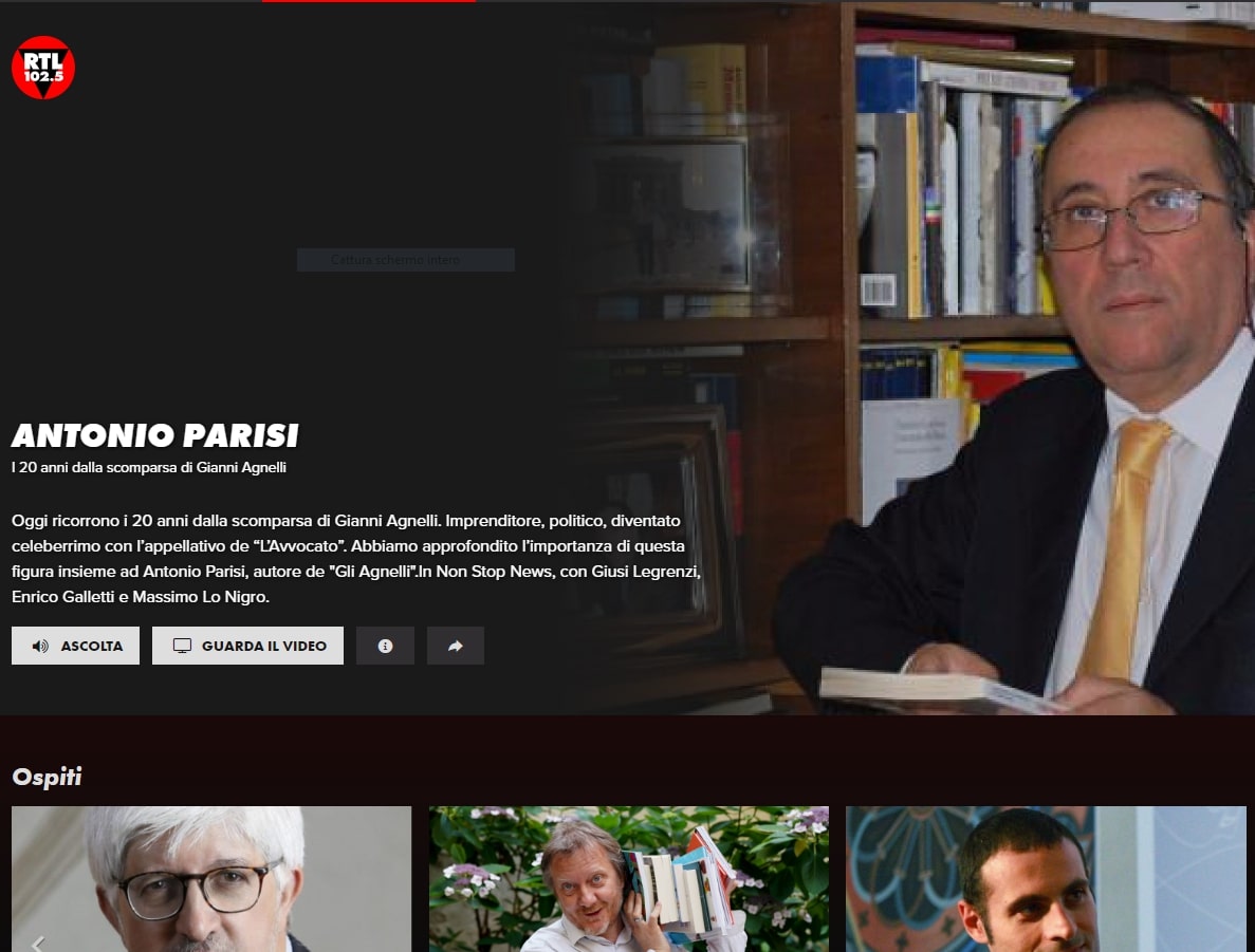 Antonio Parisi ospite questa mattina di RTL 102.5 nel giorno del ventesimo anniversario della scomparsa di Gianni Agnelli.
