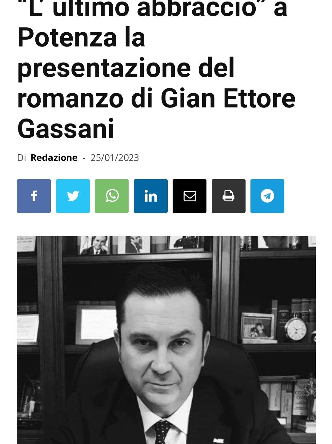 “L’ ultimo abbraccio” a Potenza la presentazione del romanzo di Gian Ettore Gassani