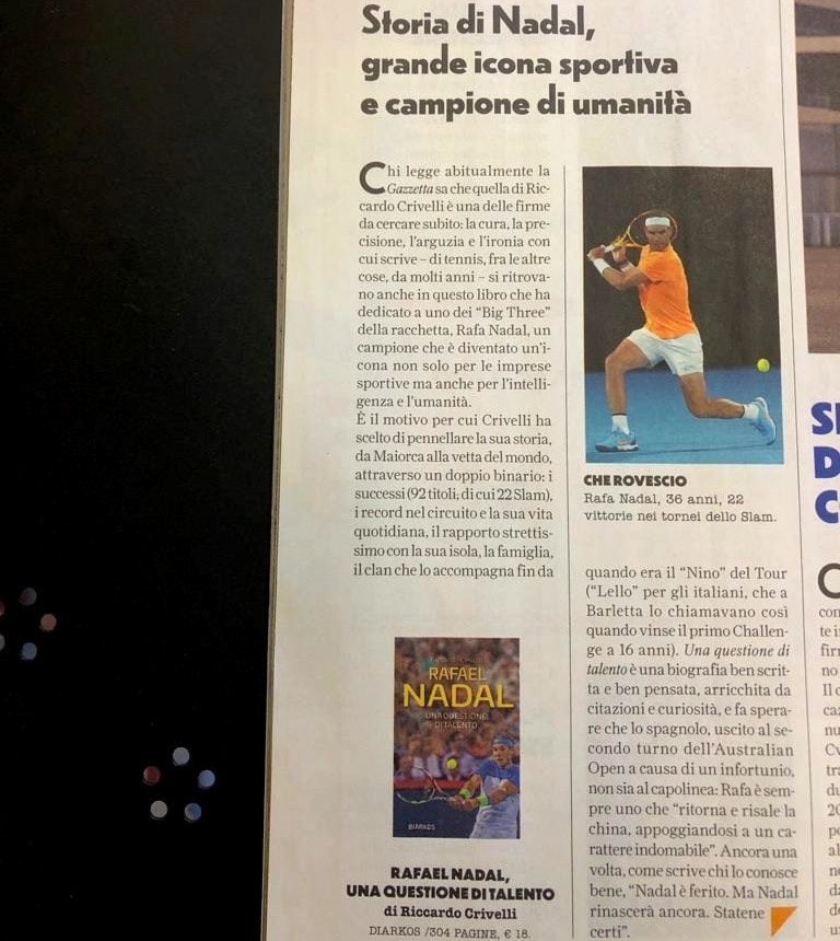 Nadal, icona sportiva e campione di Umanità. Il libro di Fabio Licari su Sportweek