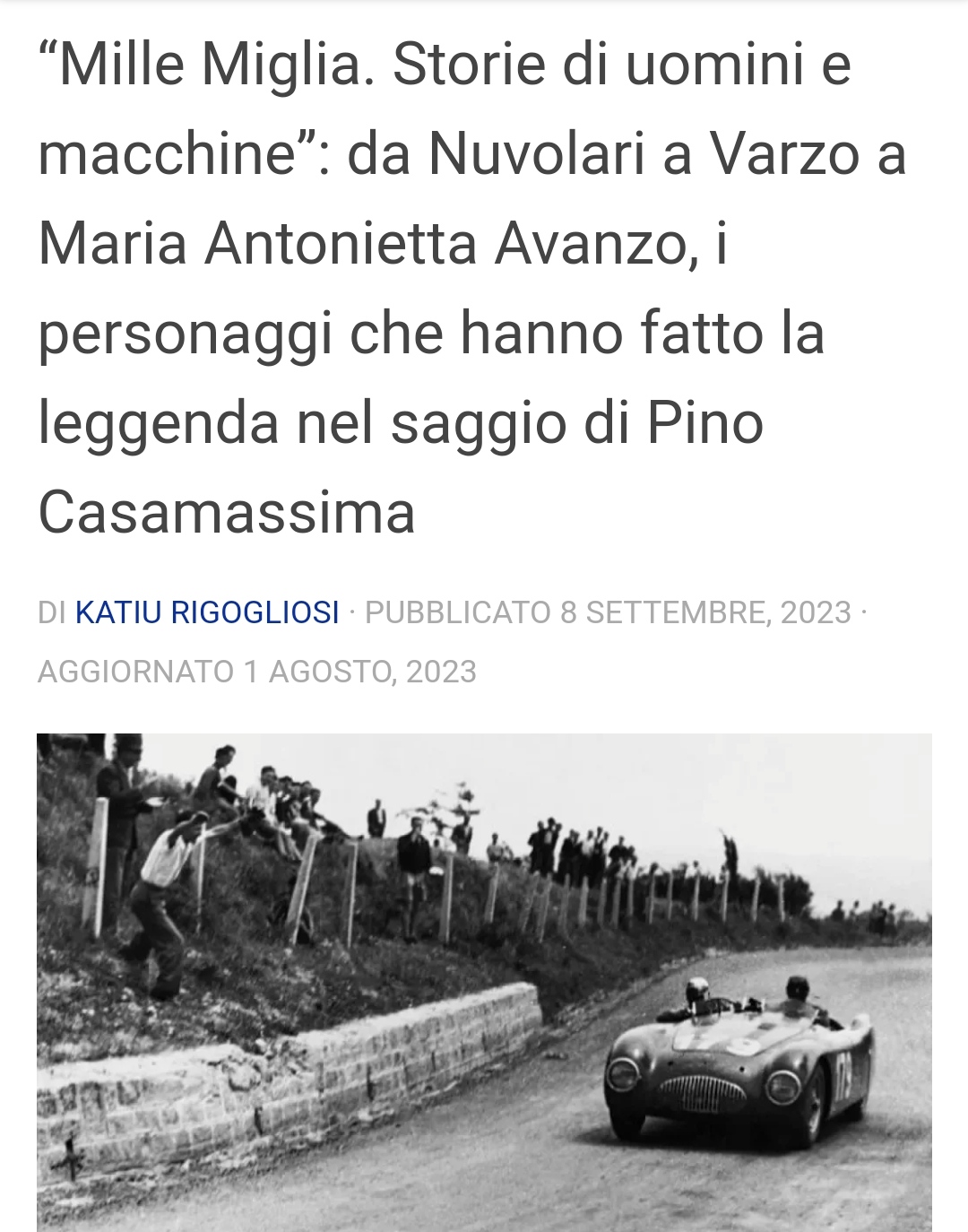 Link all'articolo: https://www.bresciasilegge.it/mille-miglia-pino-casamassima/?fbclid=IwAR0cY8FaO2F7yxucvjhw5kDINKirOUEQrRmx_rIuMcKD9YHKGKhSqef--aw