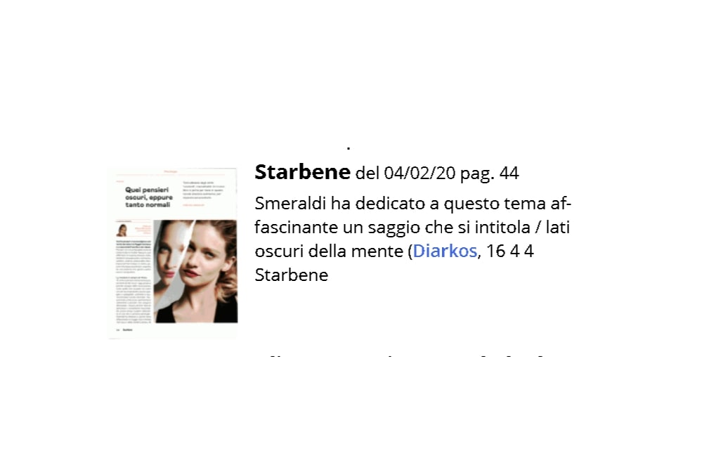 I lati oscuri della mente. Viaggio nel mondo sommerso degli istinti di Cecilia Smeraldi su Starbene del 04/02/20 pag. 44