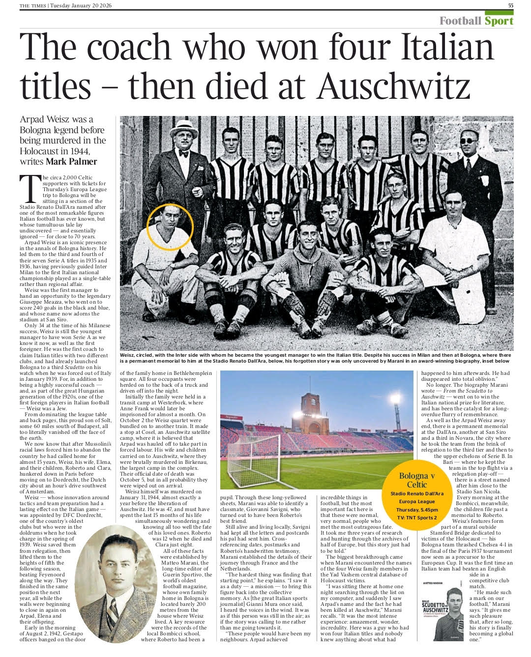 Dallo scudetto ad Auschwitz su TheTimes, quotidiano di New York