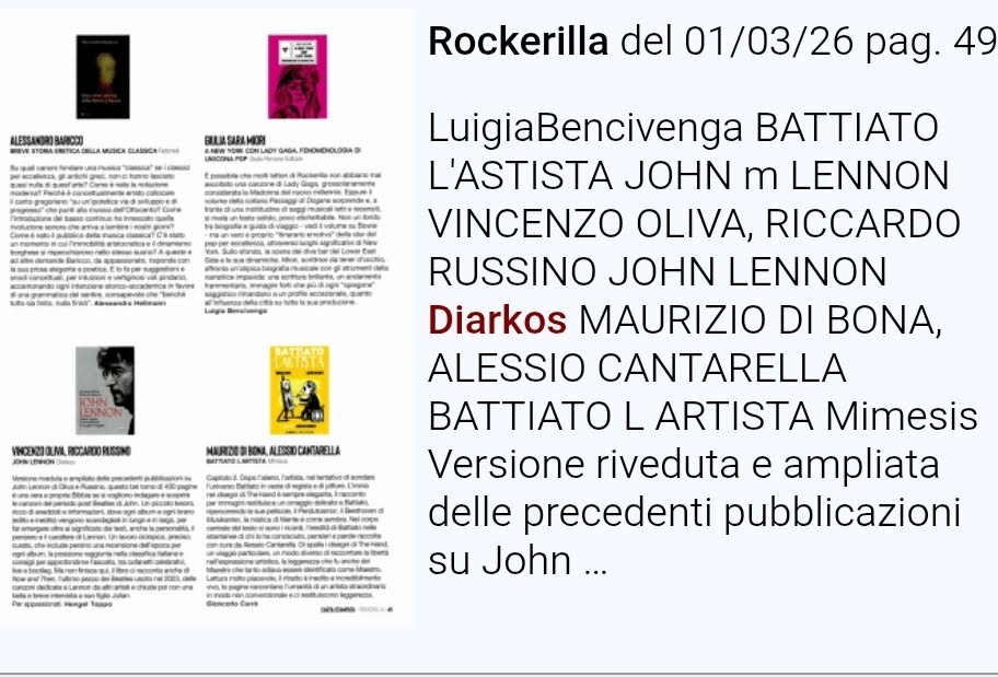 John Lennon di Vincenzo oliva e Riccardo Russino fra i libri consigliati sul nuovo numero di Rockerilla!
