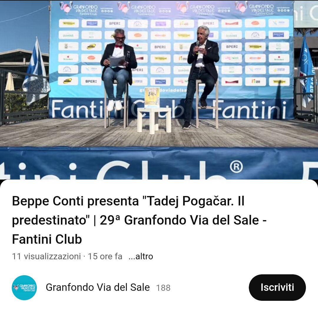 In occasione della 29ª edizione della Granfondo Via del Sale, la cornice del Fantini Club di Ceria ha ospitato un ospite d’eccezione: Beppe Conti. Il celebre giornalista e volto di Rai Sport presenta il suo ultimo libro, "Tadej Pogačar. Il predestinato", un viaggio alla scoperta del campione sloveno che sta riscrivendo la storia del ciclismo.
